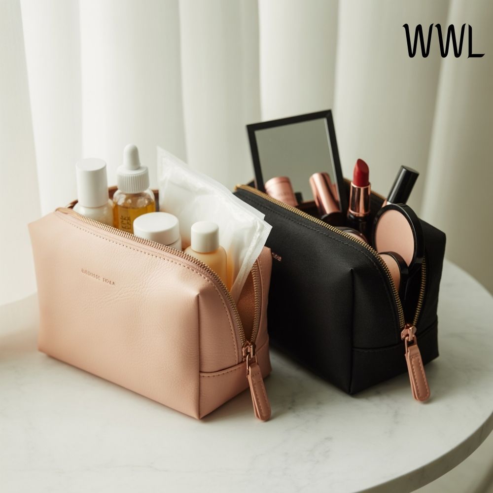 My beauty routine travels exactly as it exists at home, no more and no less. I stopped packing backups and samples and started packing familiarity. The products I use daily come with me, decanted thoughtfully and stored in a way that feels clean and composed.